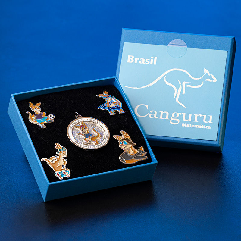 Kit de Pins Fera na Matemática: Kit contendo 4 PINS do personagem Kango, representante do Concurso Canguru de Matemática Brasil e um pingente escrito: Sou Fera em Matemática.